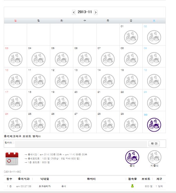 /그누보드 설치경로/plugin/attendance/attendance.php