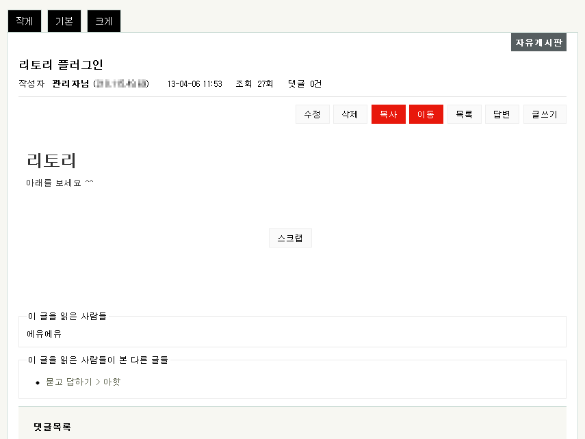 - 리토리 플러그인 : http://sir.co.kr/bbs/board.php?bo_table=g4s_plugin&wr_id=48