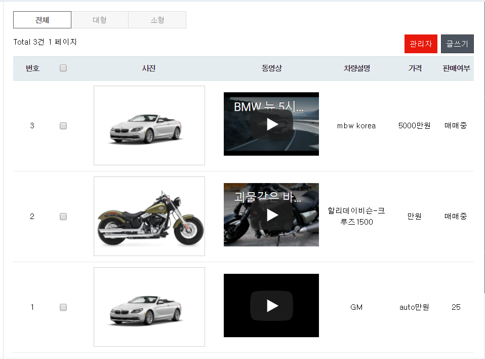 * 유튜브동영상을 볼수 있는 차량매매게시판입니다.