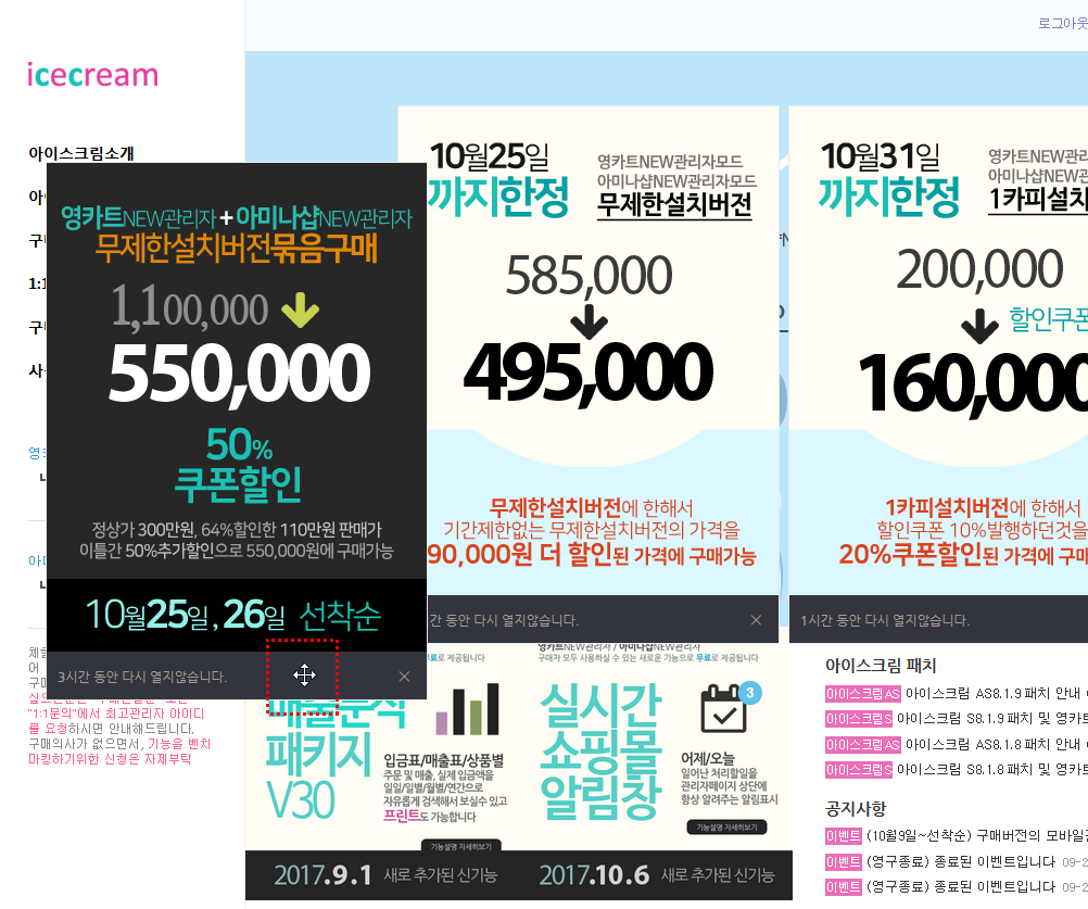 좀더 사실적으로 사이트에 적용된 팝업창의 디자인과 사이트의 어울림을 보실 수 있습니다