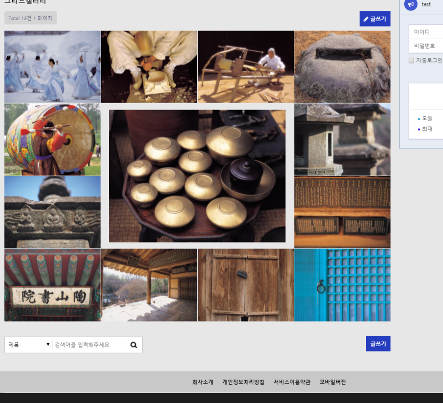 3. 관리자 > 게시판 추가후 그리드갤러리스킨 적용