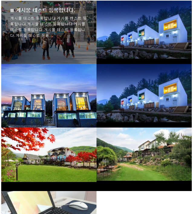목록화면에서 이미지위에 마우스를 올리면 효과를 줍니다.