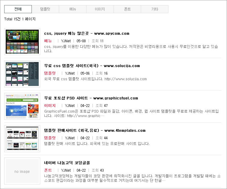 웹진(webzine)형 게시판도 많이 사용되는 스킨중에 하나일 텐데