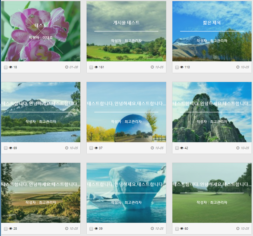 목록화면에서 이미지위에 마우스를 올리면 효과를 줍니다.