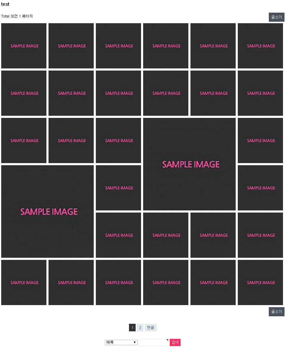 랜덤으로 큰 썸네일이 나오는 갤러리입니다.