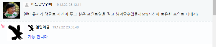 우선 첫번째 댓글로만 포인트를 선물할수 있습니다. 두번째 부터는 포인트전달안됨