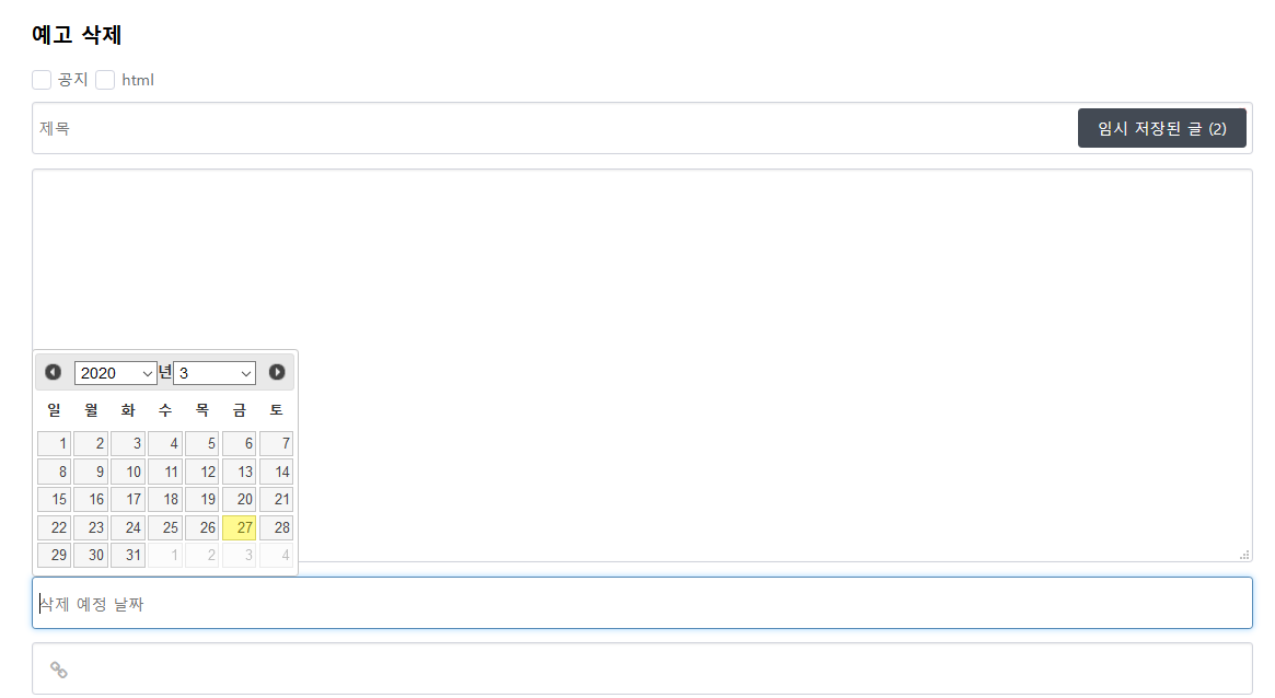 27일 오후5시경에 자동폭파일을 28일로 설정해서 게시글을 등록했습니다.