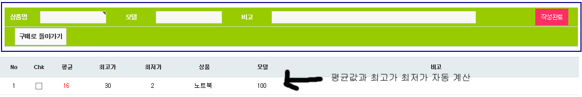 - 갯수가 많은 경우 입력 시 평균 자동 계산