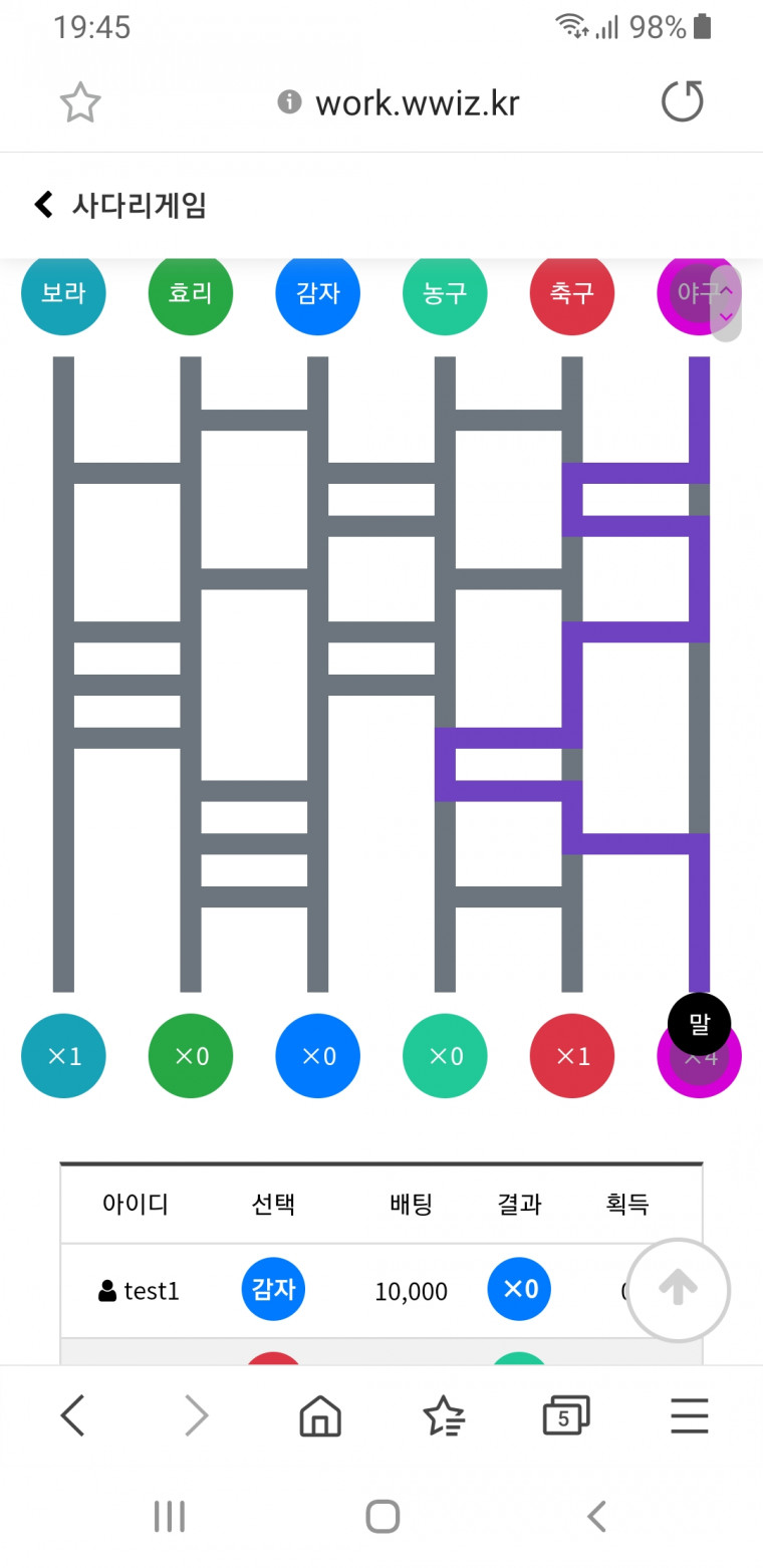 예전에 만들어 봤던 사다리게임 게시판입니다.