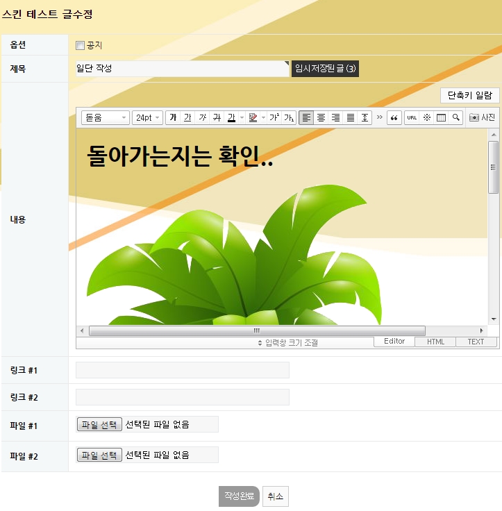 테마 쪽에서 테스트했는데요. 기본값에도 이상 없을 것으로 사료됩니다.