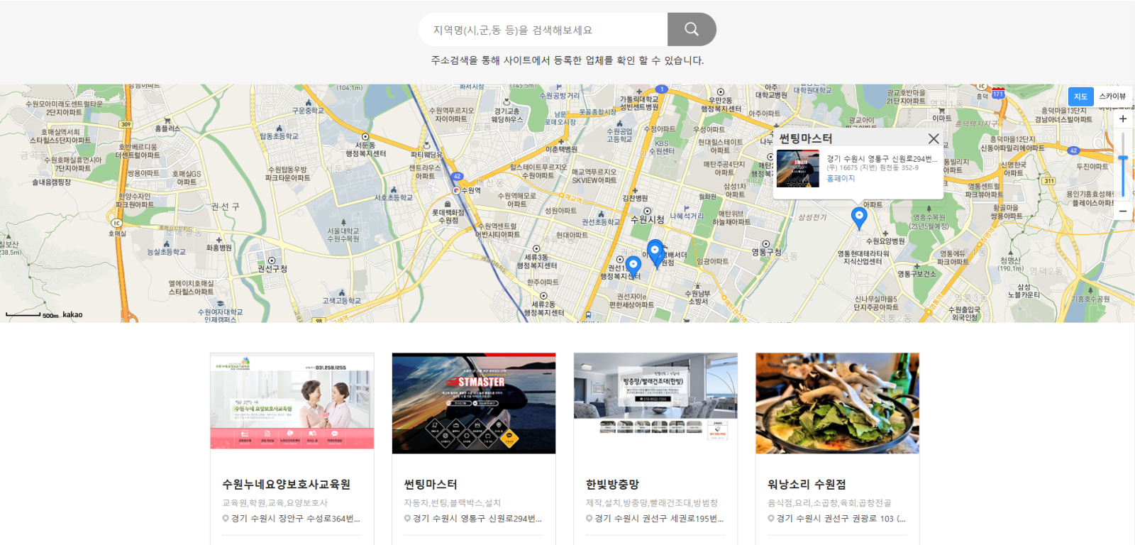 지도검색은 지역명(시,군,동 등)으로 검색할 수 있으며, 해당지역으로 이동되게 추가