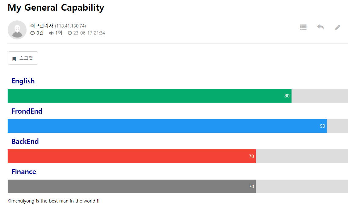 basic skin을 이용해서 능력치를 나타내는 게시판을 만들어 보았습니다.