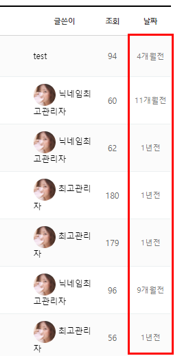 그누보드 홈페이지 게시판에 노출되는 최신글 날짜를 몇초전, 몇분전, 몇시간전, 몇일전, 몇개월전, 몇년전 으로 변경