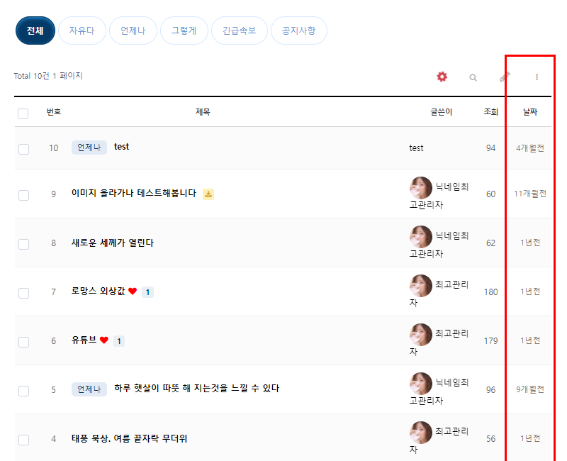 그누보드5.4버전 메인 최신글 날짜표시 미리보기 (구버전)