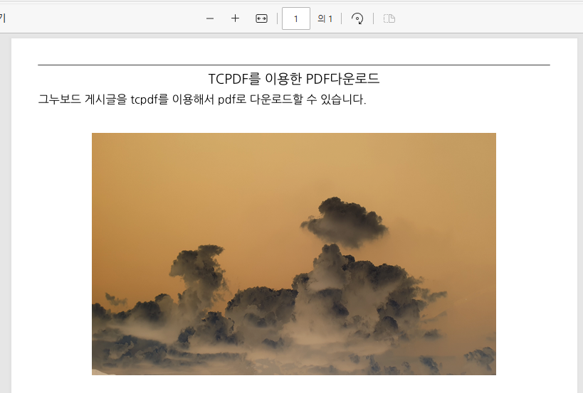 $html = '<h1>TCPDF 샘플 페이지</h1>