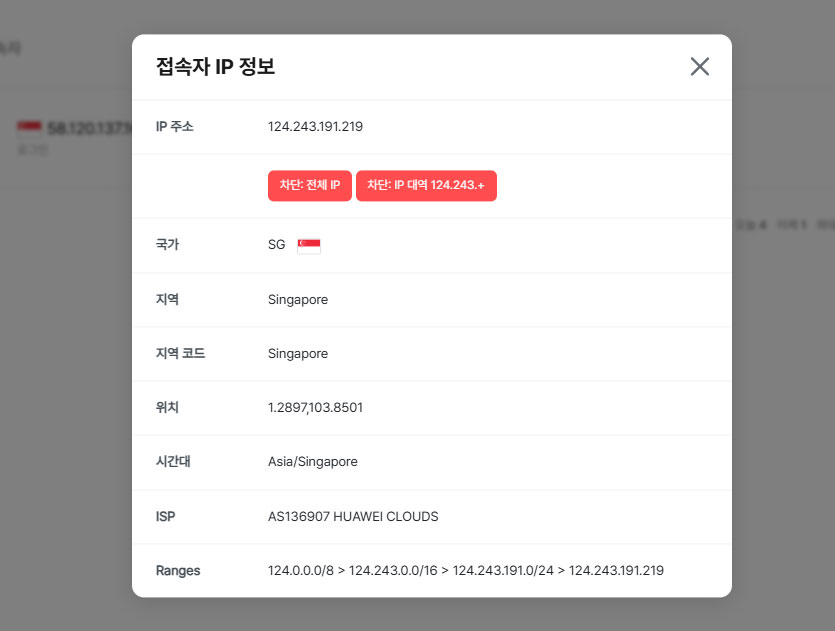 - IP접근차단버튼의 경우 관리자로 로그인시 출력