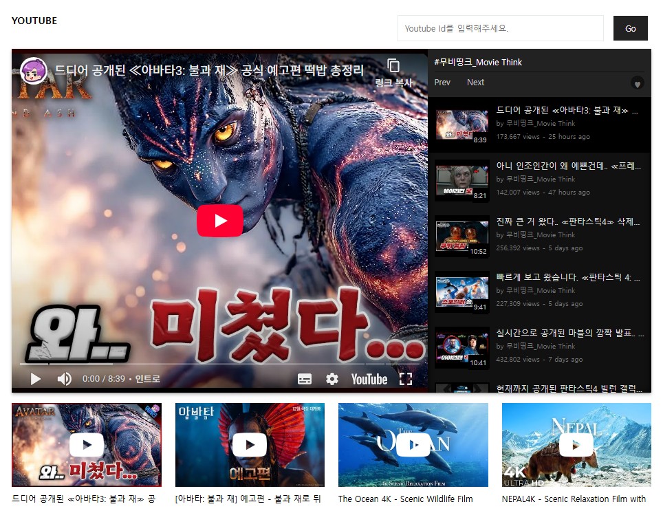 - 게시물의 유튜브 아이디를 이용해서 유튜브 채널리스트를 출력하는 최시글 스킨입니다.