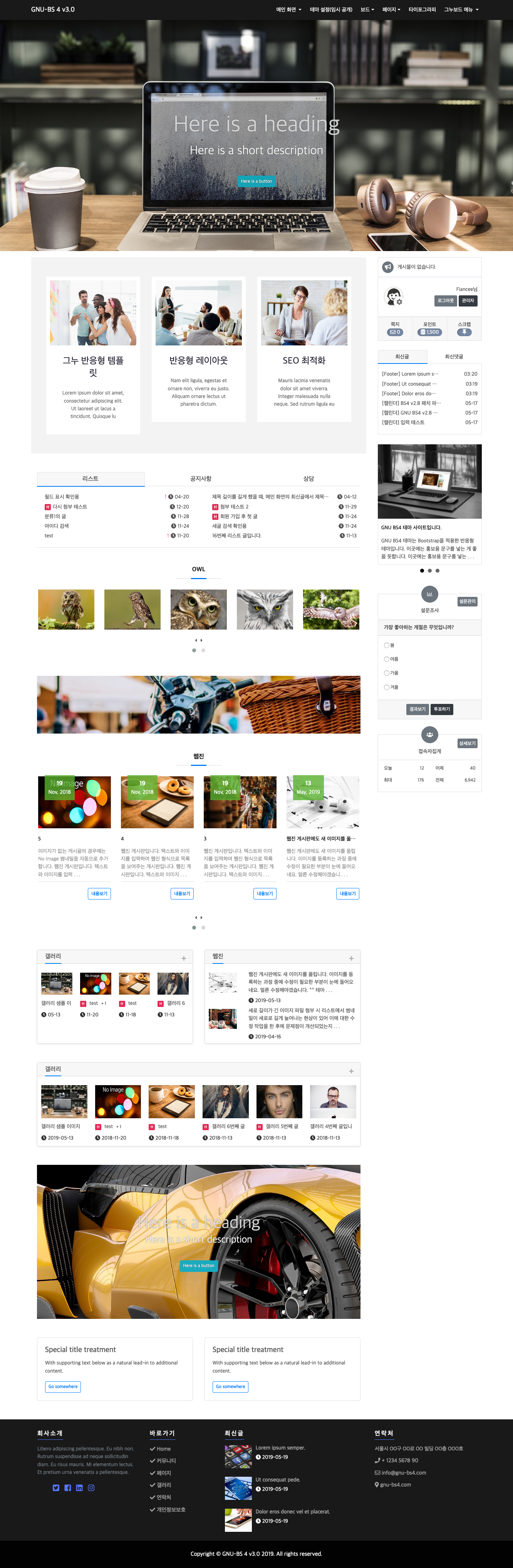 그리고 이 테마를 사용하여 웹 사이트를 구축하신 분들은 이곳 그누보드5의 사용후기 게시판에 사용 후기를 올려주시면 고맙겠습니다. 이 테마가 어디에서, 어떻게 활용되고 있는지 매우 궁금하답니다. ^^