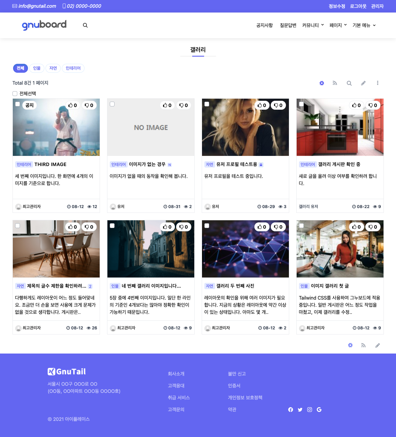 그누보드에 tailwindcss를 적용하면 재미 있겠다 싶어 아무런 계획 없이 시작했기에 그누보드 자체의 css와 커스터마이즈한 css가 깔끔하게 정돈된 상태가 아니며, 테마의 완성도도 그리 높지 않음을 양해바랍니다.