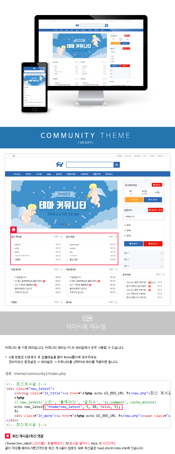 관리자모드 환경설정 → 테마설정 → 커뮤니티를 선택하여 테마를 적용하면 됩니다.