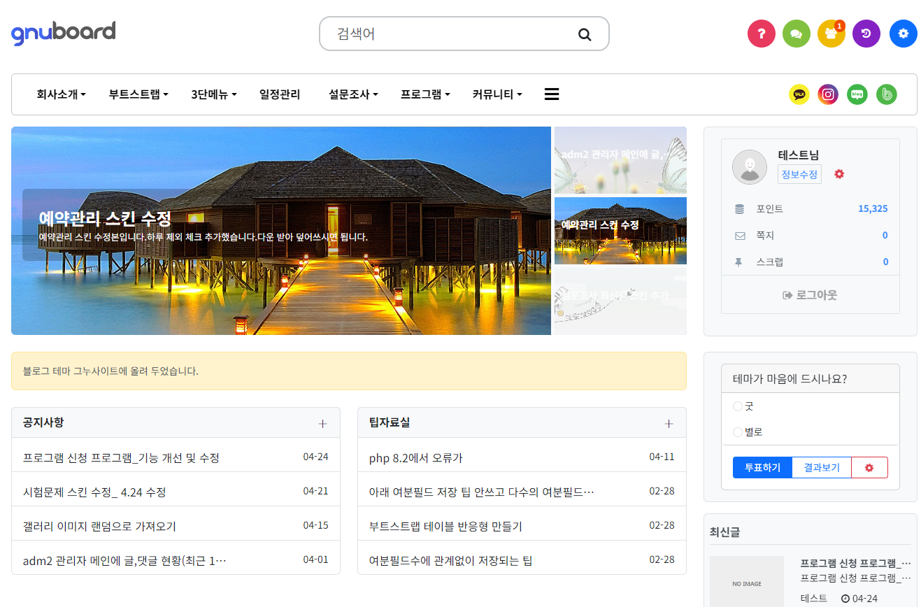 php 8.2환경에서 수정한 수정본입니다. 부트스트랩 블로그형 테마 및 관리자메뉴입니다.