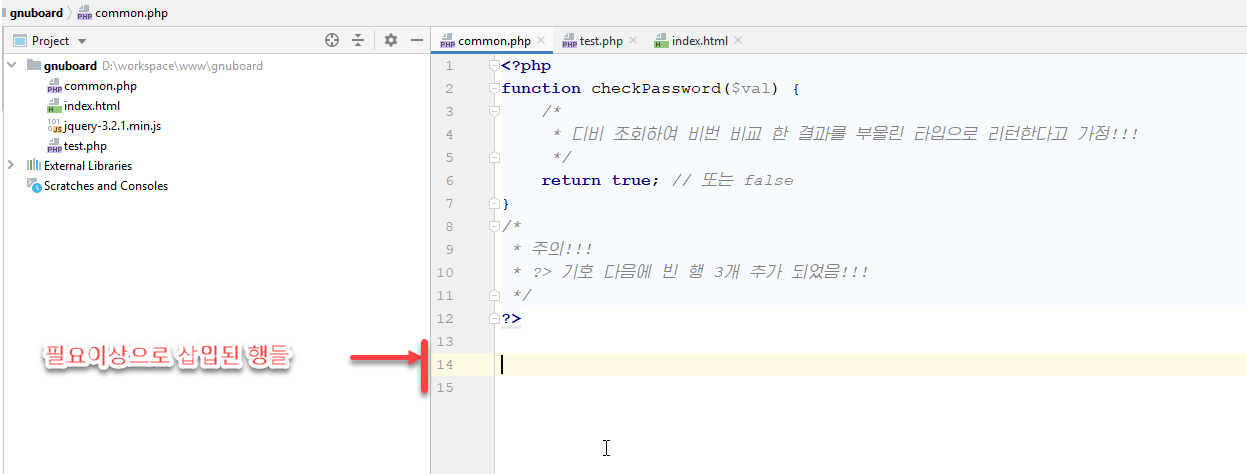 * ?> 기호 다음에 빈 행 2개 추가 되었음!!!