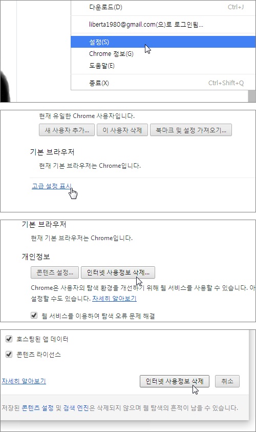 1. 임시 인터넷 파일들을 삭제하고 재접속합니다.