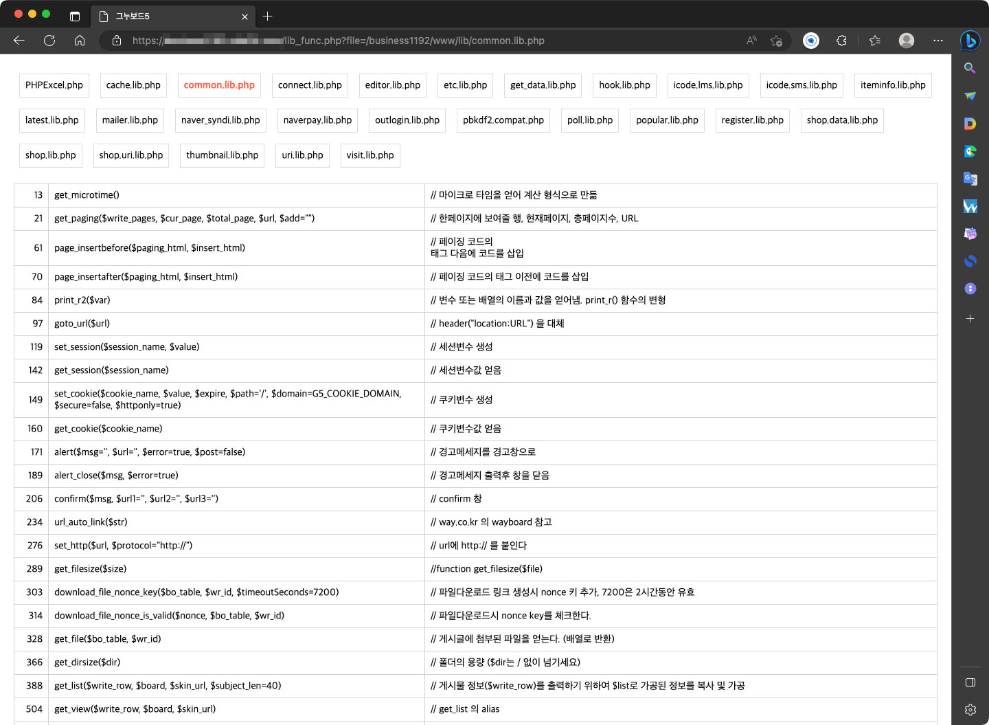 lib 폴더에 있는 *.lib.php 파일 안의 함수들을 편하게 볼 수 있게 하는 php 소스입니다.