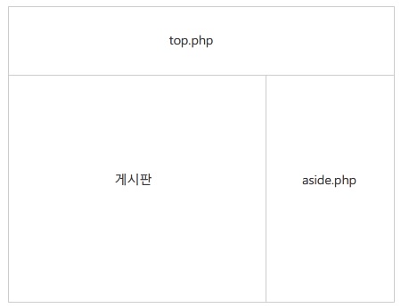 저의 경우 이미지처럼 top.php, aside.php를 만들어서 상단 메뉴부분과 사이드부분에 서브메뉴나 아웃로그인, 최신글스킨등을 넣어서 인클루드로 불러옵니다.