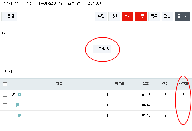 1-1. view.skin.php 파일에서 스크랩 버튼 출력 부분을 이렇게 수정.