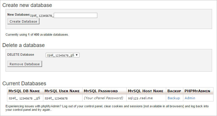 Rael.me 무료 호스팅에서 그누보드 설치시 MySQL 정보입력
