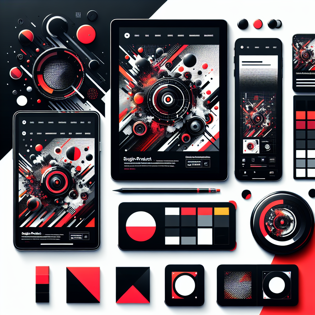 Generate a bold black music artist site, UX/UI, edgy, black, red, white one product website only. Please make the colors random.
