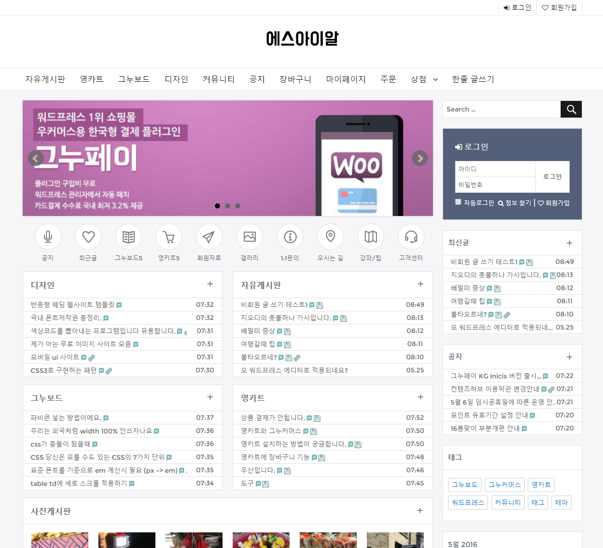워드프레스와 그누커머스를 사용하여 만든 커뮤니티 기본 테마입니다.