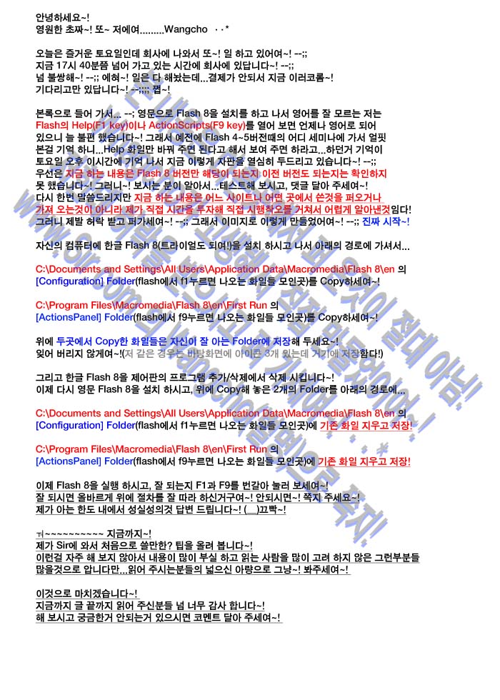 초짜의 영문Flash 도움말 한글로 바꿔여~~!