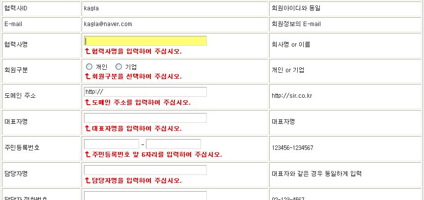 <td>대표자와 같은 경우 동일하게 입력</td>