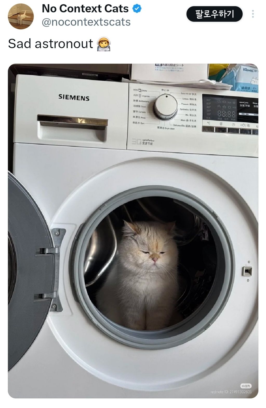 우주선에 탑승한 슬픈 고양이
