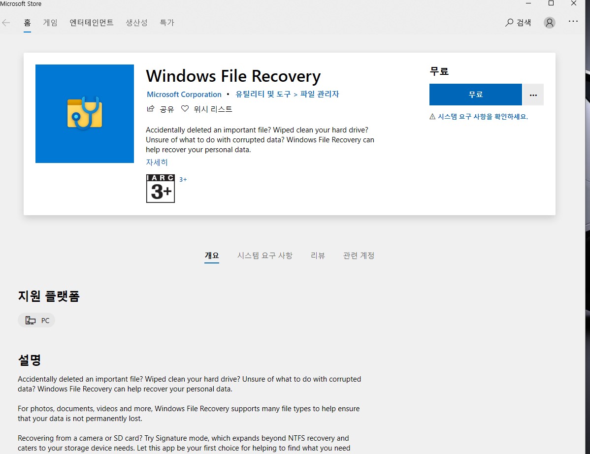 마이크로소프트에서 출시한 파일 복구 프로그램 입니다.