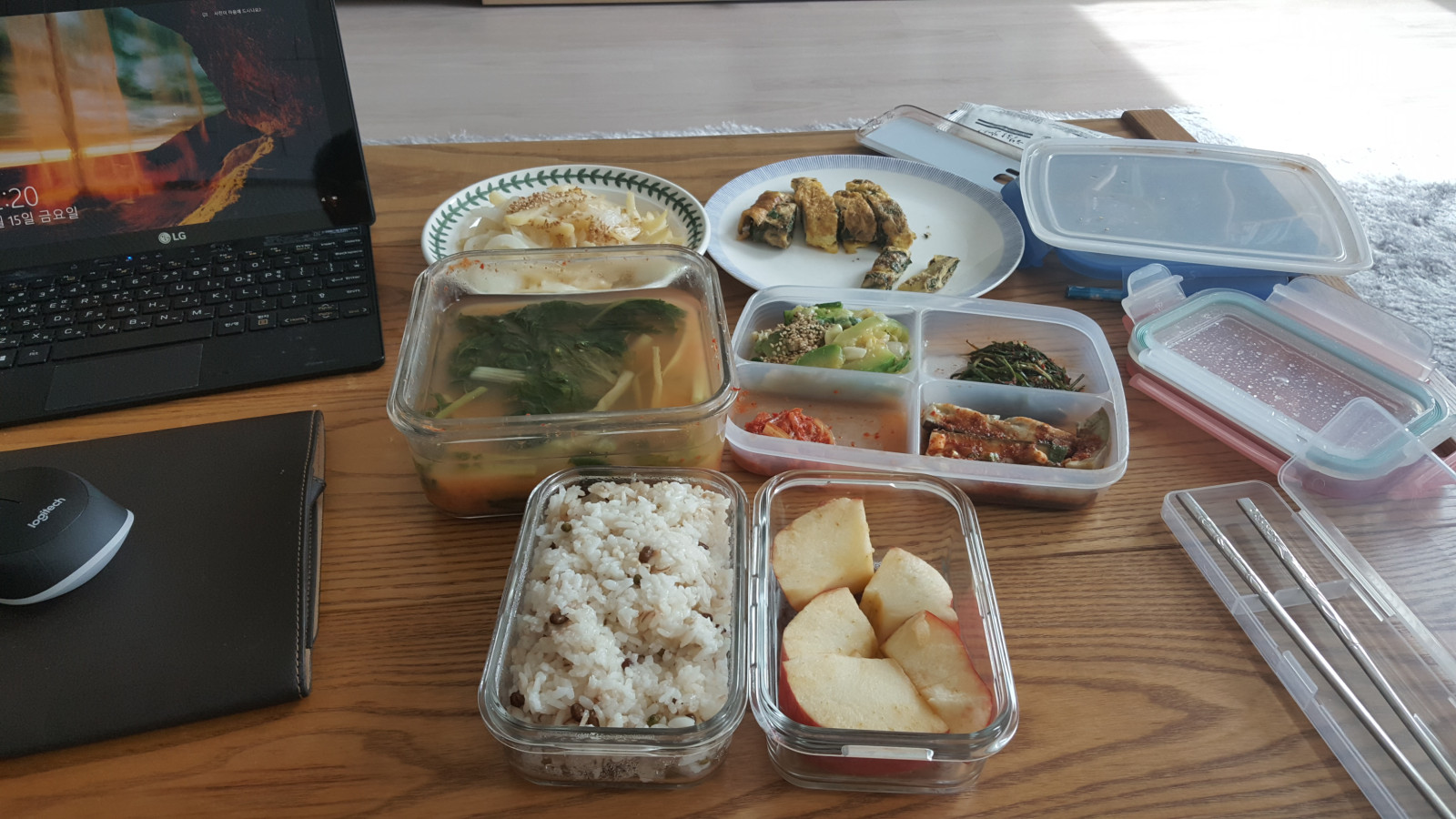 반찬 종류가 제법 되는 점심 도시락입니다.