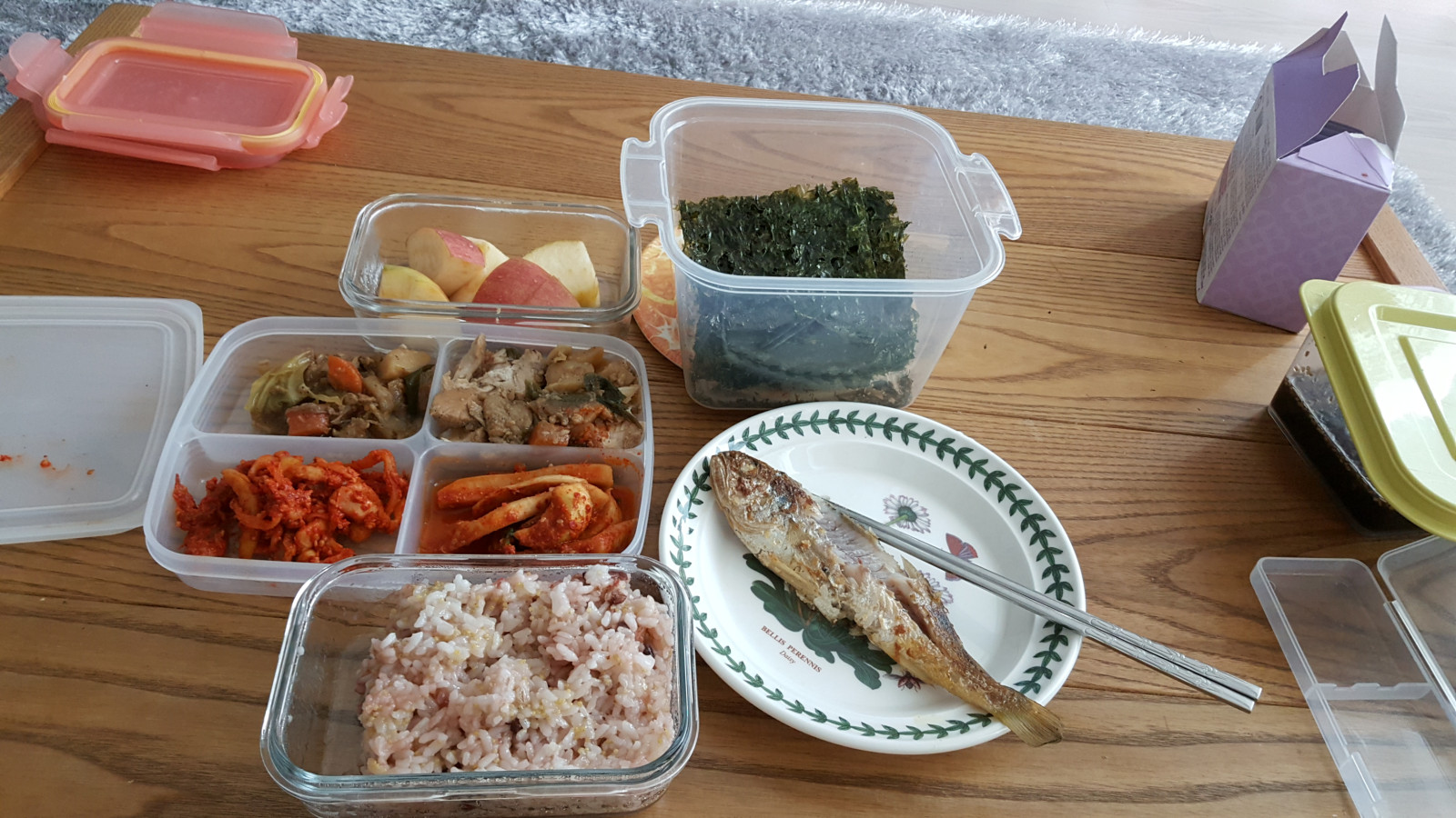 도시락에 생선도 있네요..