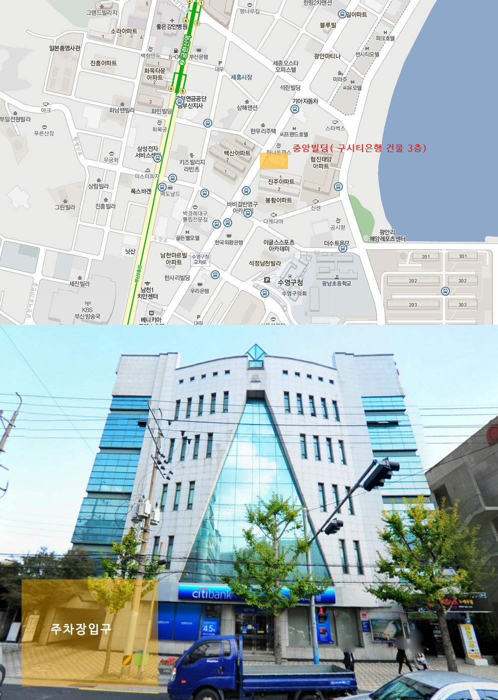약도와 건물 사진을 첨부 합니다. 차량을 가지고 오시는 분은 사진에 주차장 입구가 표시되어 있으니 참고 하시기 바랍니다..