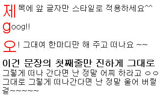 <p class="myparagraph2">이건 문장의 첫째줄만 진하게 그대로 그렇게 떠나 간다면 난 정말 어찌 하라고 ㅇㅇ 그대로 그렇게 떠나간다면 난 정말 울어 버릴 걸~~~~~ <p>