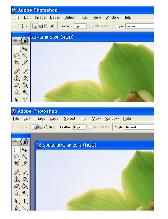파일을 열면 위 스샷처럼 툴바뒤로 그림이 숨습니다.