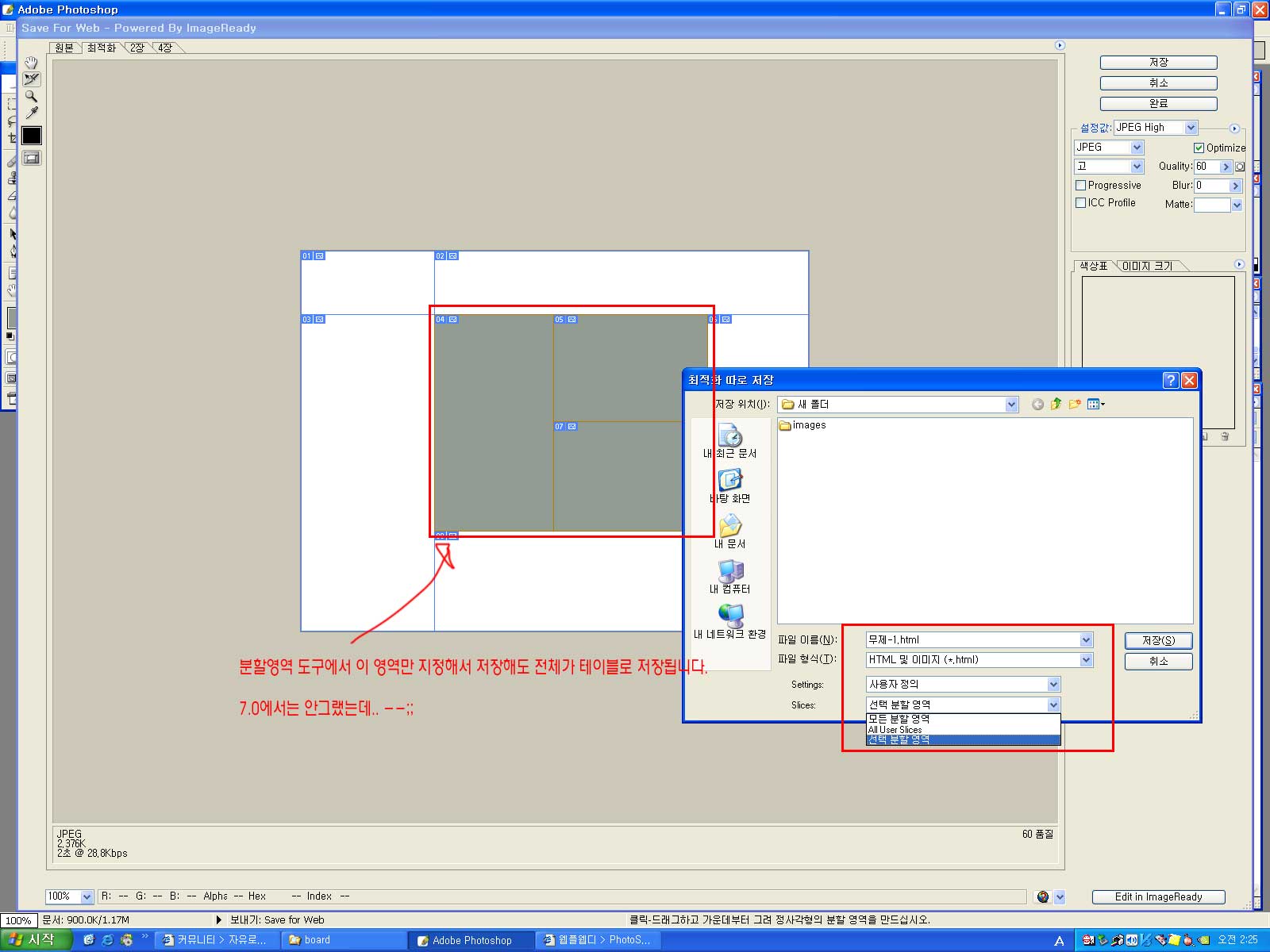 포토샵8.0cs 분할영역 도구로 일부 영역만 저장은 불가능 한가요?