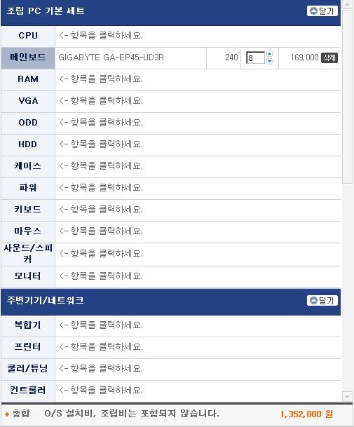다나와 같은 사이트에서 가상온라인 견적낼때요.