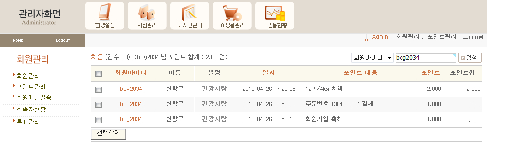 그런데 첨부이미지처럼 포인트 합계가 최종남아있는 포인트 합계와 동일합니다.