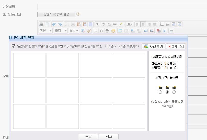 상품입력시 또는 수정시 이지에디터에 언어셋이 깨집니다.