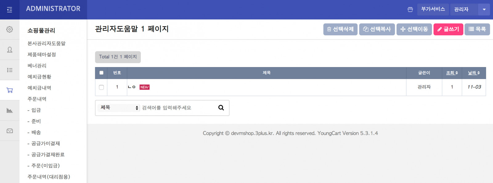 영카트 5.3 관리자페이지에서 게시판 사용하기