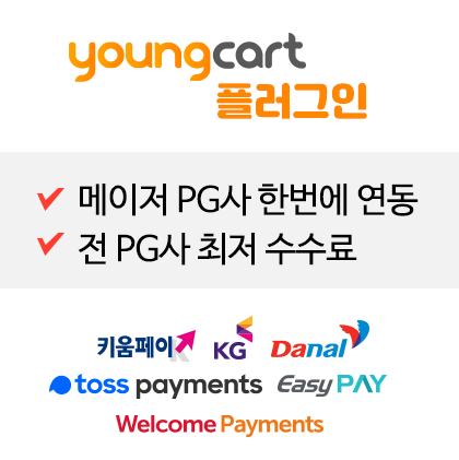 영카트 PG사 플러그인(토스, KG모빌리언스, KICC, 키움페이, 다날, 웰컴,페이버스)