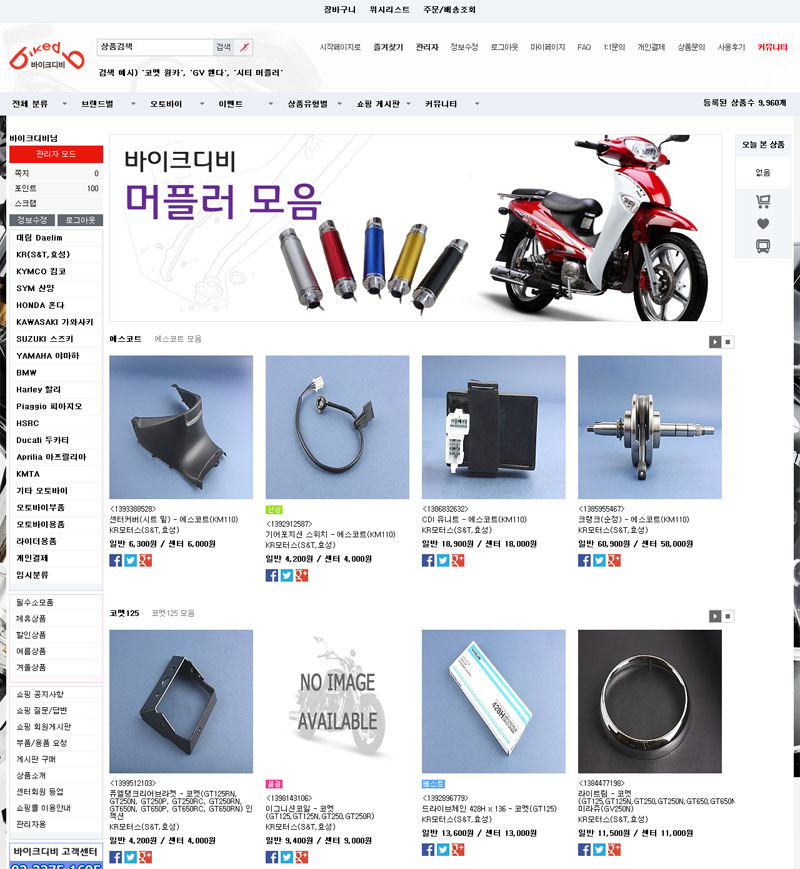 영카트5로 만든 오토바이 부품 쇼핑몰 바이크디비입니다.