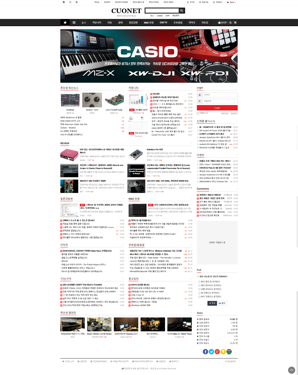영카트4에서 영카트5로 업그레이드한 후 아미나빌더를 적용한 음악커뮤니티, 쇼핑몰 큐오넷입니다.